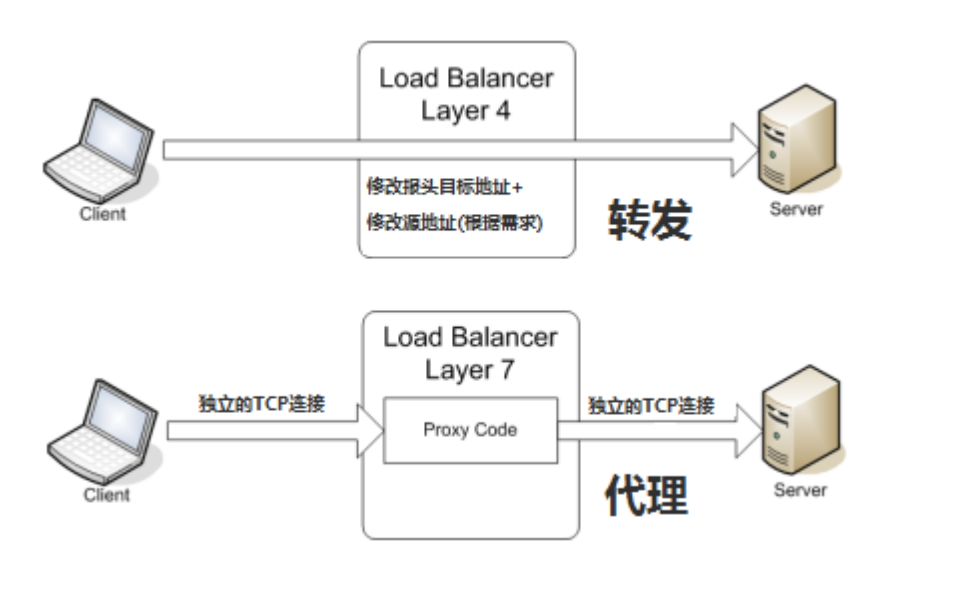 以常见的 TCP 为例,负载均衡设备在接收到第一个来自客户端的 SYN 请求时,即通过上述方式选择一个最佳的服务器,并对报文中目标 IP 地址进行修改(改为后端服务器 IP),直接转发给该服务器。TCP 的连接建立,即三次握手是客户端和服务器直接建立的,负载均衡设备只是起到一个类似路由器的转发动作。在某些部署情况下,为保证服务器回包可以正确返回给负载均衡设备,在转发报文的同时可能还会对报文原来的源地址进行修改。