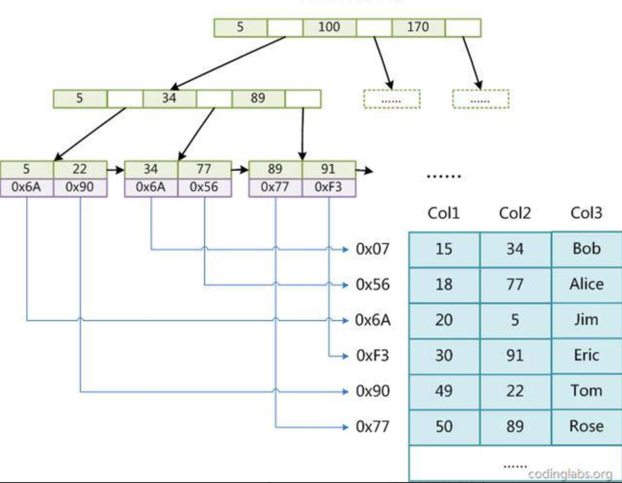 上面这个查询语句执行时会依照最左前缀匹配原则,检索时会使用索引(col1,col2)进行数据匹配。